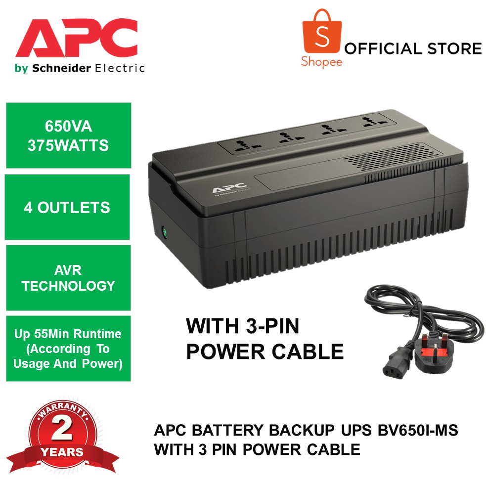 Apc 650va 230v Easy Ups Backup Battery Universal Outlet Bv650i Ms Bv650 With 3 Pin Power Cable Shopee Malaysia